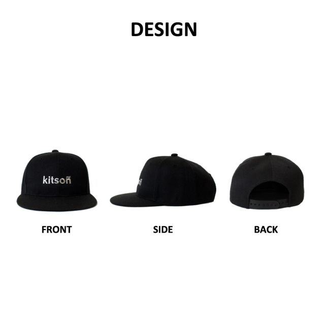 | 商品Data | シーズンレスでお使いいただけるフラットバイザーキャップにkitson meのロゴをデザインしたアイテム。 自分好みのサイズにバックのアメリカンバンドで調整可能。 後ろかぶりでカジュアルに、前かぶりでももちろんきまるコーデをワンランクアップアイテムです |