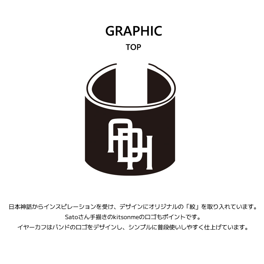 Sato (from ASH DA HERO)さんとのコラボ企画! 今回のコラボは半袖Tシャツ、ZIPパーカー、イヤーカフをリリース。 【デザイン】 日本神話からインスピレーションを受け、デザインにオリジナルの「紋」を取り入れています。 Satoさん手描きのkitsonmeのロゴもポイントです。 イヤーカフはバンドのロゴをデザインし、シンプルに普段使いしやすく仕上げています。 ここでしか手に入らない受注期間限定アイテムです!是非お買い求めください!!! ※現時点での商品の発送予定時期は【5月中旬頃~5月下旬頃順次発送】を予定しております。 ※受注生産の為、発送予定時期が前後する場合がございます。 ※商品代金が10万円以上にて代引き決済を利用してのご注文につきましては、 トラブル防止のため、決済方法をクレジットカード決済もしくはコンビニ決済に変更 させていただく場合がございます。変更前にお電話、メールにてご連絡をさせていただきます。※ ※また、受注生産とさせていただいておりますが、 各色・サイズ毎に生産数に限りがございます為、 生産数の上限に達しました場合在庫切れとなる場合がございます。 予めご了承頂けますようお願い致します。 |