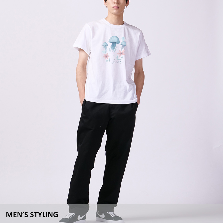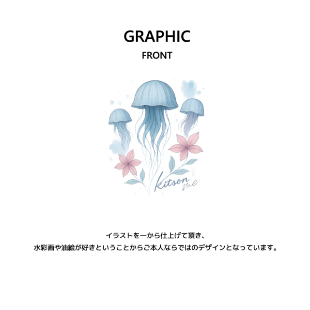海乃美月さんとのコラボ企画! 今回のコラボは半袖Tシャツ、ZIPパーカー、スウェットパンツ、ネックレスをリリース。 【デザイン】 お名前にちなんだクラゲ、海、月をテーマにデザイン。 ネックレス、スウェットパンツ、ZIPパーカーは 水面に写る月を落書きやサインの雰囲気をイメージしています。 ブランドロゴにはご自身で考えられたクラゲを組み合わせ、 抽象的にならないよう分かりやすさを出しながら、目を付けるなどこだわりの点が詰まっています。 半袖Tシャツはイラストを一から仕上げて頂き、 水彩画や油絵が好きということからご本人ならではのデザインとなっています。 ここでしか手に入らない受注期間限定アイテムです!是非お買い求めください!!! ※現時点での商品の発送予定時期は【4月下旬頃~5月上旬頃順次発送】を予定しております。 ※受注生産の為、発送予定時期が前後する場合がございます。 ※商品代金が10万円以上にて代引き決済を利用してのご注文につきましては、 トラブル防止のため、決済方法をクレジットカード決済もしくはコンビニ決済に変更 させていただく場合がございます。変更前にお電話、メールにてご連絡をさせていただきます。※ ※商品によっては撮影時にサンプルを使用しているため若干仕様が異なる場合がございます。 また、サイズ・カラーによっては仕様が異なる場合もございます。 ※手作業で縫製をしているため縫製の仕様により、 個体差が生じてしまいますので、1~2cm程度の誤差は予めご了承くださいませ。 ※洗濯機を使用した場合、お届け時のサイズより多少縮む場合がございます。 洗濯機を使用する場合は裏返してネットに入れることを推奨しております。 また、タンブラー乾燥機を使用しますとプリントが剥がれる恐れがありますので 避けていただきますようお願いいたします。 また、洗濯時の液温は40度以下とし、 塩素系および酸素系漂白剤の使用は避けていただきますようお願いいたします。 アイロンにつきましてもプリント及び刺繍部分は避け、 生地部分にアイロンをかける場合にはあて布をして110度(低温)にてお願いいたします。 ※また、受注生産とさせていただいておりますが、 各色・サイズ毎に生産数に限りがございます為、 生産数の上限に達しました場合在庫切れとなる場合がございます。 予めご了承頂けますようお願い致します。 |