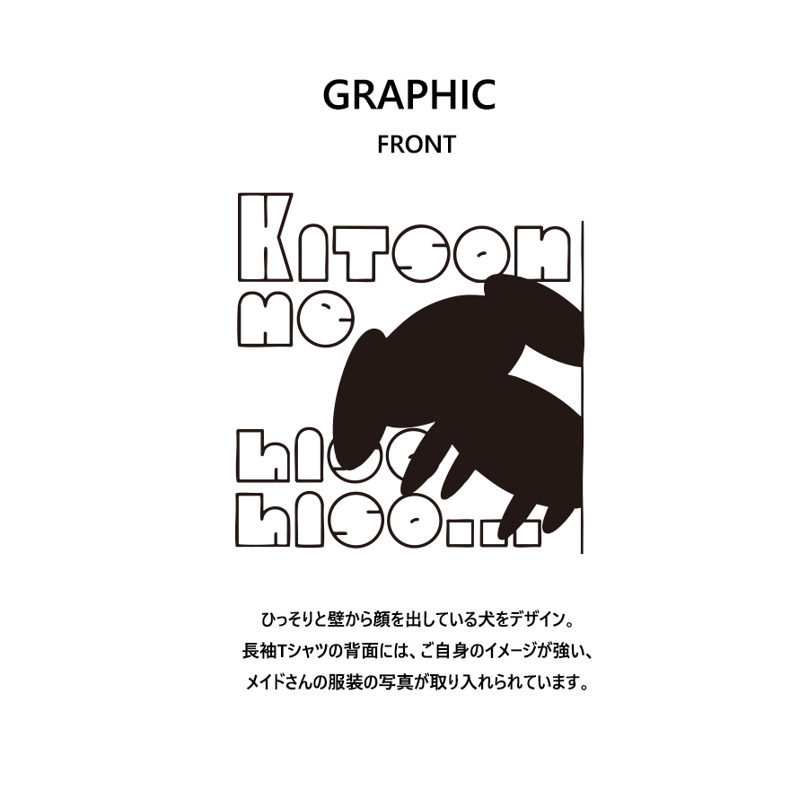 ひっそりゆうみさんとのコラボ企画! 今回のコラボは長袖Tシャツ、ZIPパーカーをリリース。 【デザイン】 ひっそりと壁から顔を出している犬をデザイン。 長袖Tシャツの背面には、ご自身のイメージが強い、 メイドさんの服装の写真が取り入れられています。 ※現時点での商品の発送予定時期は 【12月上旬頃~12月中旬頃順次発送】を予定しております。 尚、工場の生産の都合上、お客様のご入金・決済のタイミングにより前後する場合がございます。 予めご了承ください。 ※商品代金が10万円以上にて代引き決済を利用してのご注文につきましては、 トラブル防止のため、決済方法をクレジットカード決済もしくはコンビニ決済に変更 させていただく場合がございます。変更前にお電話、メールにてご連絡をさせていただきます。 ※商品によっては撮影時にサンプルを使用しているため若干仕様が異なる場合がございます。 また、サイズ・カラーによっては仕様が異なる場合もございます。 ※手作業で縫製をしているため縫製の仕様により、 個体差が生じてしまいますので、1~2cm程度の誤差は予めご了承くださいませ。 ※洗濯機を使用した場合、お届け時のサイズより多少縮む場合がございます。 また、乾燥機の使用は避けていただきますようお願いいたします。 ※また、受注生産とさせていただいておりますが、 各色・サイズ毎に生産数に限りがございます為、 生産数の上限に達しました場合在庫切れとなる場合がございます。 |