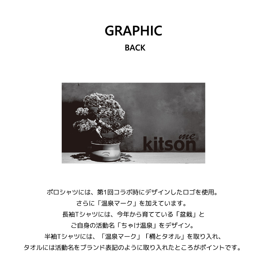 大竹ひとみさんとのコラボ企画第3弾! 今回のコラボは半袖Tシャツ、長袖Tシャツ、ポロシャツ、キャップをリリース。 【デザイン】 ポロシャツには、第1回コラボ時にデザインしたロゴを使用。さらに「温泉マーク」を加えています。 長袖Tシャツには、今年から育てている「盆栽」と、ご自身の活動名「ちゃけ温泉」をデザイン。 半袖Tシャツには、「温泉マーク」「桶とタオル」を取り入れ、タオルには活動名をブランド表記のように 取り入れたところがポイントです。 ここでしか手に入らない受注期間限定アイテムです!是非お買い求めください!!! ※商品の発送予定時期は【4月上旬頃~4月中旬頃順次発送予定】 となります。 ※受注生産の為、発送予定時期が前後する場合がございます。 ※高額注文の場合には ご注文後にお電話にてご連絡をさせていただく場合がございます。 お電話にてご連絡が取れない場合にはメールにてご連絡させていただき、 ご連絡日より3日以内にご返信をいただけない場合には不正注文の可能性があると判断し トラブル防止のためご注文をキャンセルとさせていただきます。 ※商品によっては撮影時にサンプルを使用しているため若干仕様が異なる場合がございます。 また、サイズ・カラーによっては仕様が異なる場合もございます。 ※手作業で縫製をしているため縫製の仕様により、 個体差が生じてしまいますので、1~2cm程度の誤差は予めご了承くださいませ。 ※洗濯機を使用した場合、お届け時のサイズより多少縮む場合がございます。 洗濯機を使用する場合は裏返してネットに入れることを推奨しております。 また、タンブラー乾燥機を使用しますとプリントが剥がれる恐れがありますので 避けていただきますようお願いいたします。 また、洗濯時の液温は40度以下とし、 塩素系および酸素系漂白剤の使用は避けていただきますようお願いいたします。 アイロンにつきましてもプリント及び刺繍部分は避け、 生地部分にアイロンをかける場合にはあて布をして110度(低温)にてお願いいたします。 ※また、受注生産とさせていただいておりますが、 各色・サイズ毎に生産数に限りがございます為、 生産数の上限に達しました場合在庫切れとなる場合がございます。 |