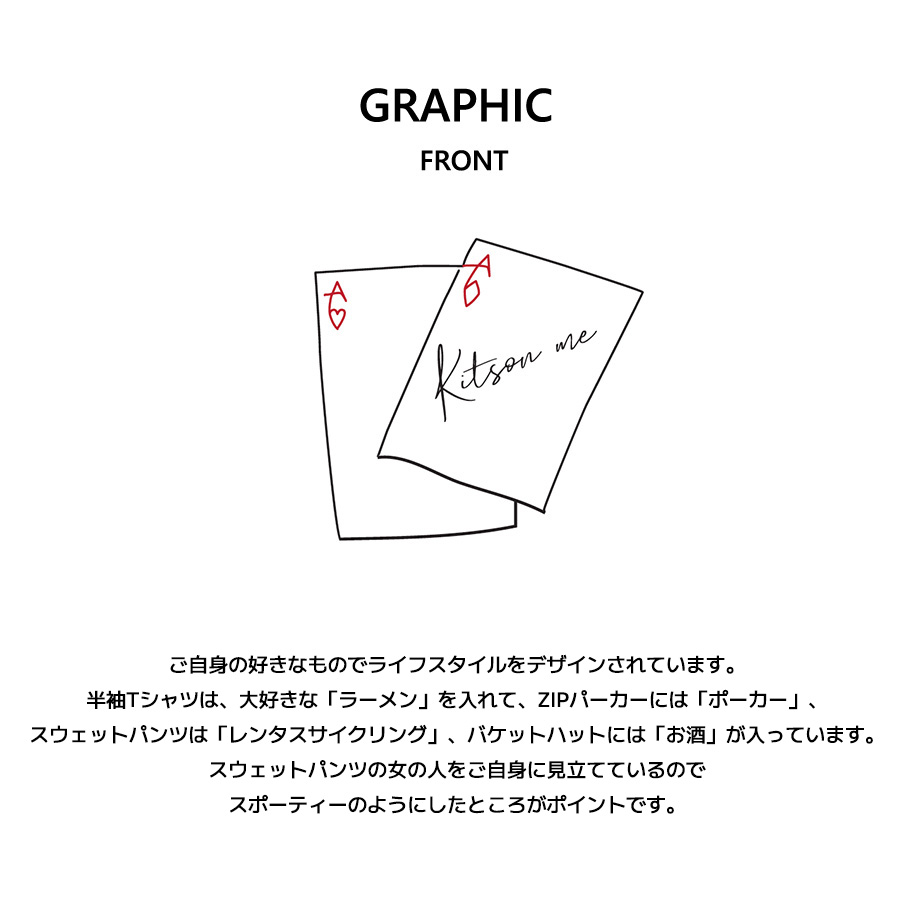 相良茉優さんとのコラボ企画! 今回のコラボは半袖Tシャツ、ZIPパーカー、スウェットパンツ、バケットハットをリリース。 【デザイン】 ご自身の好きなものでライフスタイルをデザインされています。 半袖Tシャツは、大好きな「ラーメン」を入れて、ZIPパーカーには「ポーカー」、 スウェットパンツは「レンタスサイクリング」、バケットハットには「お酒」が入っています。 スウェットパンツの女の人をご自身に見立てているので スポーティーのようにしたところがポイントです。 ※現時点での商品の発送予定時期は 【4月上旬頃順次発送】を予定しております。 尚、工場の生産の都合上、お客様のご入金・決済のタイミングにより前後する場合がございます。 予めご了承ください。 ※商品代金が10万円以上にて代引き決済を利用してのご注文につきましては、 トラブル防止のため、決済方法をクレジットカード決済もしくはコンビニ決済に変更 させていただく場合がございます。変更前にお電話、メールにてご連絡をさせていただきます。 ※商品によっては撮影時にサンプルを使用しているため若干仕様が異なる場合がございます。 また、サイズ・カラーによっては仕様が異なる場合もございます。 ※手作業で縫製をしているため縫製の仕様により、 個体差が生じてしまいますので、1~2cm程度の誤差は予めご了承くださいませ。 ※洗濯機を使用した場合、お届け時のサイズより多少縮む場合がございます。 また、乾燥機の使用は避けていただきますようお願いいたします。 ※また、受注生産とさせていただいておりますが、 各色・サイズ毎に生産数に限りがございます為、 生産数の上限に達しました場合在庫切れとなる場合がございます。 |